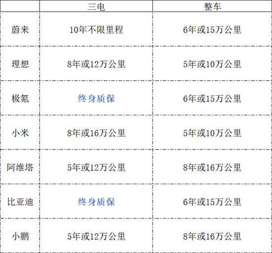 三电系统(动力电池、驱动电机、电机控制器)是新能源车的“心脏”,它的质保靠谱与否,直接决定了咱们长期用车安不安心,也是各品牌比拼的重点。主流品牌的三电质保差距很明显,其中极氪和比亚迪推出终身质保,打破了年限和里程的限制,堪称长期保障的天花板。